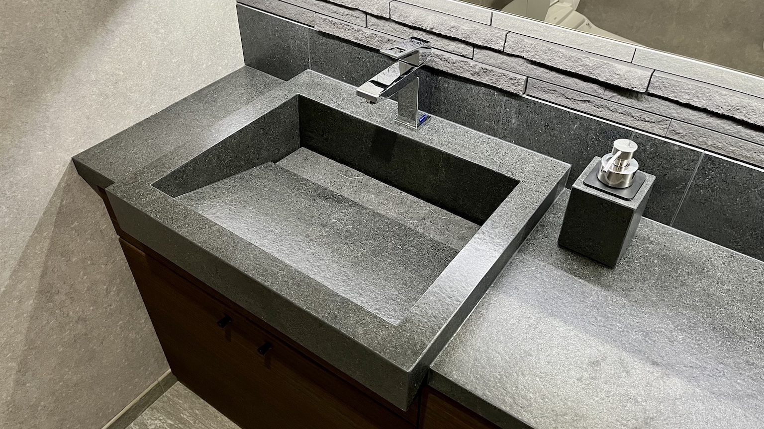 タイル製のカウンター天板と洗面ボウルを合わせたり